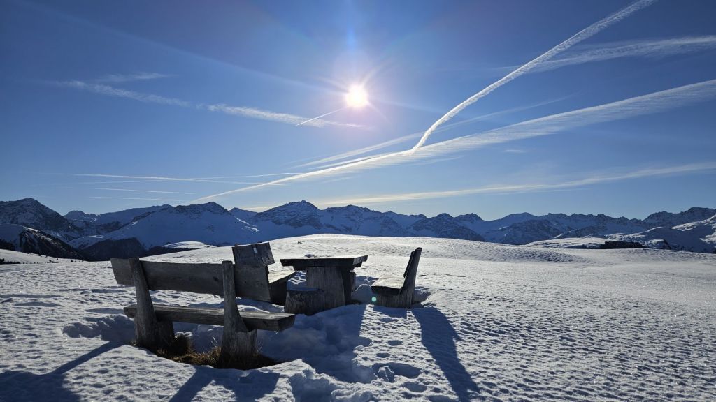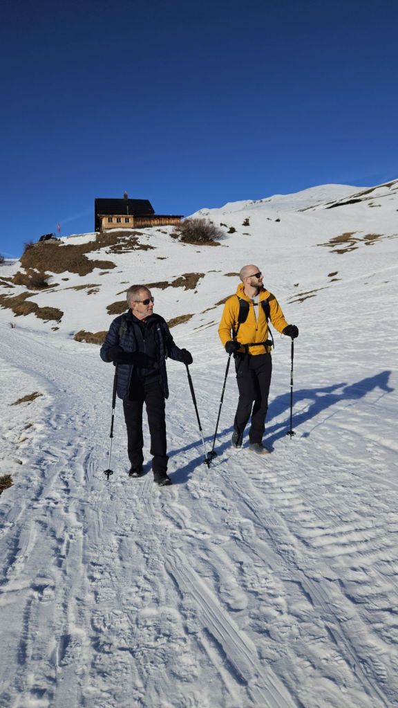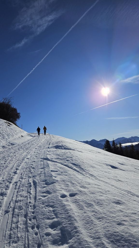 Am zweiten Weihnachtstag trafen wir Papi direkt in St.Peter und fuhren von dort gemeinsam hoch zum Triemel. Von dort liefen wir zu Fuss über das Skihaus Hochwang zum wunderschönen Picknicktisch in Zalüenja, von wo aus wir auf „unsere Seite“ des Schanfiggs sehen konnten. Dort genossen wir eine kurze Pause und die Wärme der Sonne, bevor wir zurück zum Skihaus liefen und uns zum Abschluss der schönen zwei Tag noch einen Kafi Schnaps gönnten.